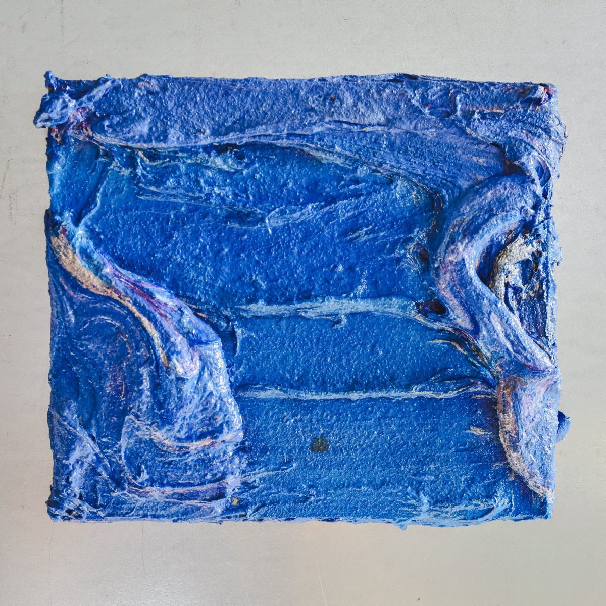 Błękit jest zatem kolorem lekkości, świeżości. Jako temat sam w sobie występuje w obrazie Błękit, który wciąga. Na małej płaszczyźnie, w prosty sposób pokazuję ten kolor w konfiguracji kilku temperatur i materii.