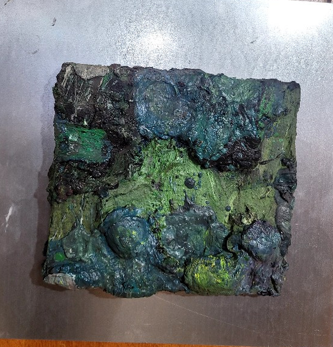 Ta niewielka kompozycja zwraca uwagę na to, co dzieje się z kolorem w momencie, w którym przechodzi on z jednej tonacji w drugą, pokazując gradient pomiędzy nimi. Kompozycja ukazuje rozciągniecie takiego gradientu, efekt wizualny jaki daje on przy przejściu z soczystej wiosennej zieleni do żółci wziętej ze światła operującego właśnie wiosną. Kompozycja poprzez materię i kształt farby sugeruje również pewien ruch, jaki mam wrażenie pojawia się przy obserwacji koloru, który przecież ciągle się zmienia wraz ze zmianą światła, odcieni, ruchem kształtów.